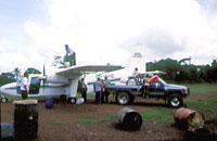 gefahren ist. um 11 am airstrip. micha unterhält sich mit einem
